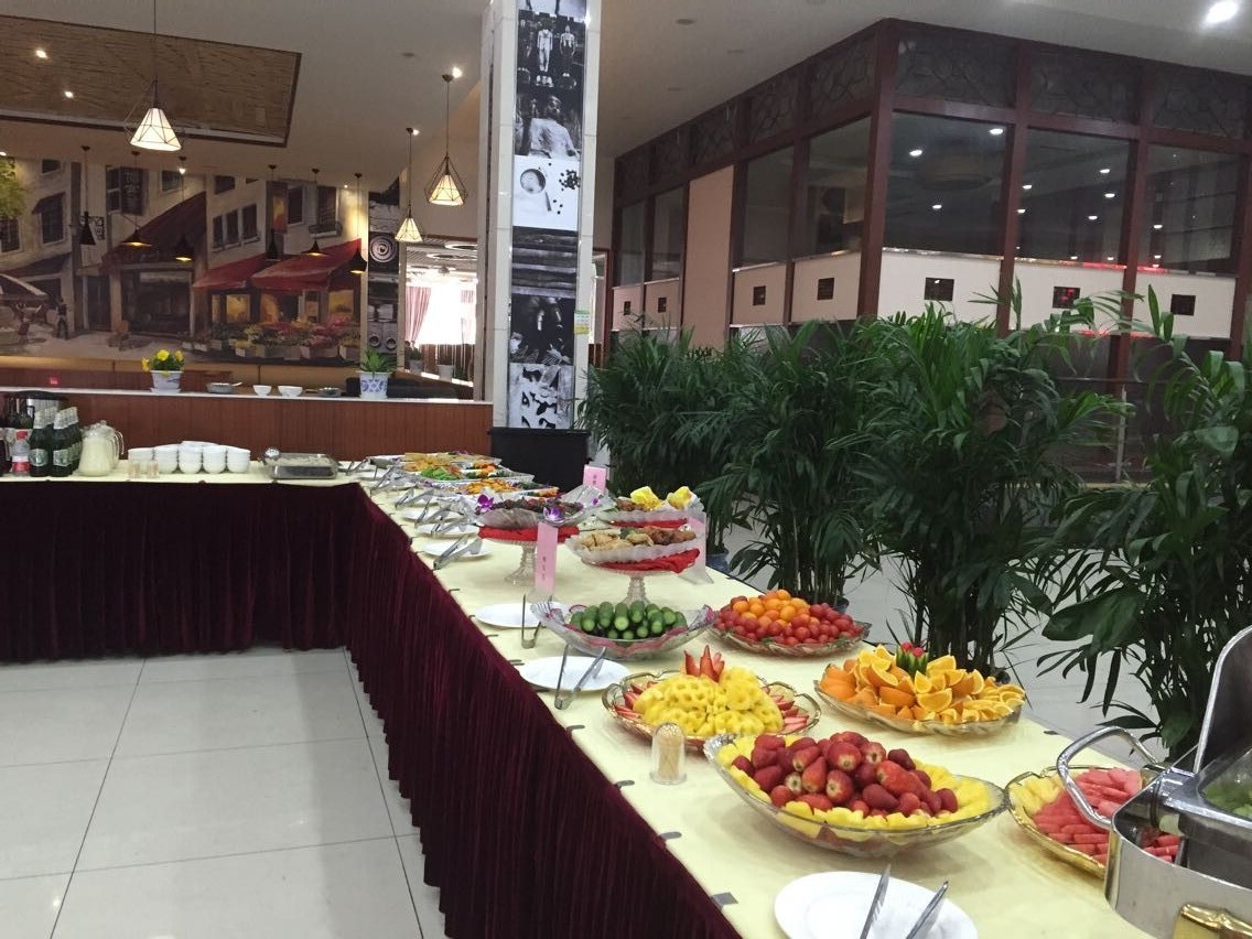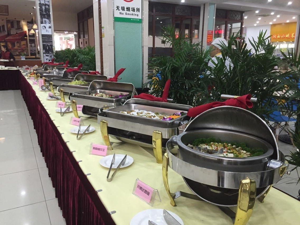 本次自助餐按200人进餐标准设计,分热菜台、西餐台、点心台、水果台、酒水台,提供菜品56道,酒水饮料6种,从不同口味满足进餐者需要。丰富的菜品、干净整洁的进餐环境、周到的服务得到进餐者的一致好评。