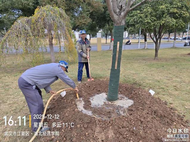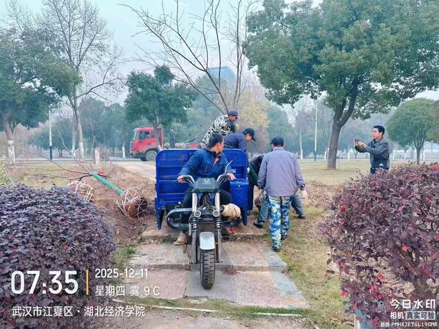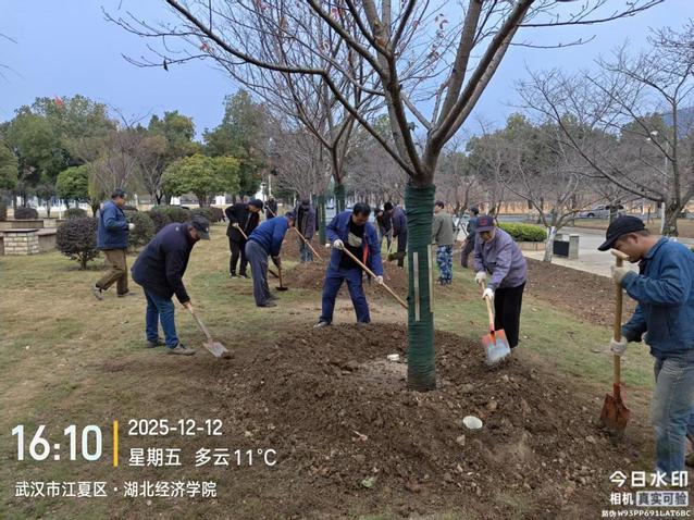本网讯(通讯员 蒋哲颖)寒冬添新绿,奋进正当时。12月12日,后勤集团开展冬季植树活动,在孔圣园、樱花谷及图书馆周边共计栽种以楚系樱花为主的苗木118株,为冬日校园增添了一抹生机与暖意,以实际行动美化校园环境、厚植生态底蕴。